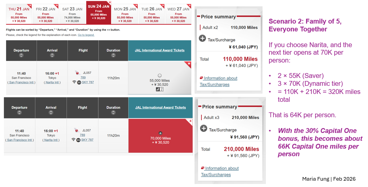 Dynamic pricing didn’t change. Access did. When you combine: Japan Airlines' dynamic award pricing, Capital One’s 30% transfer bonus, and a family-first strategy, you stop chasing one perfect seat and start booking everyone together. To a family of 3 ~ 6, and even a family 8 and above, that’s the real upgrade between Japan and Asia.