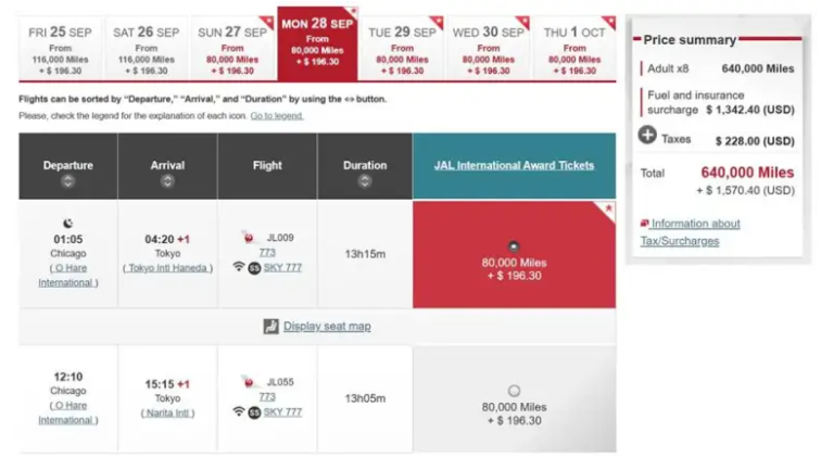 Now imagine a family of five with kids who want to sit together. Tokyo has two airports, so now the decision is: not “Which is cheaper?” but “Which works better for our family?” (Remember: there is no right or wrong. Some families choose based on points, others on convenience.) If you choose Tokyo Narita, and the next tier opens at 70,000 per person: