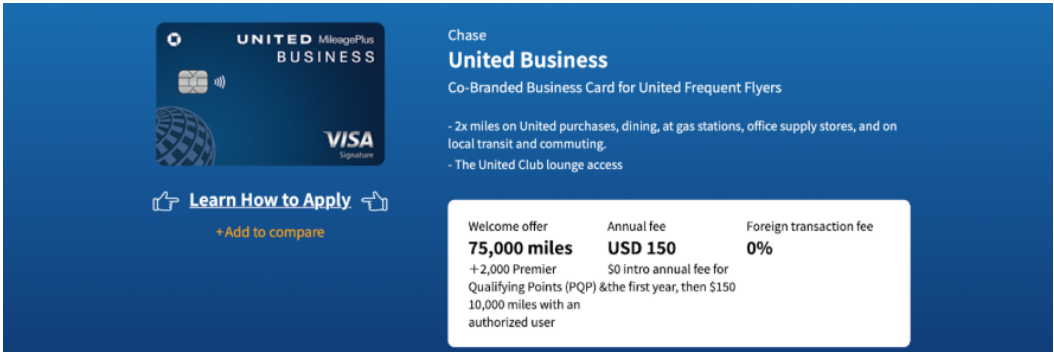 Chase United Airlines Personal & Business Co-Branded Credit Cards